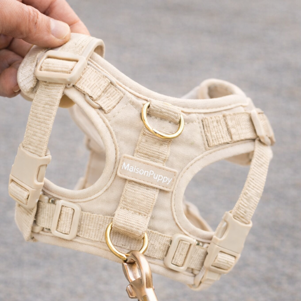 Chaque harnais MaisonPuppy est conçu à partir de matériaux résistants et doux